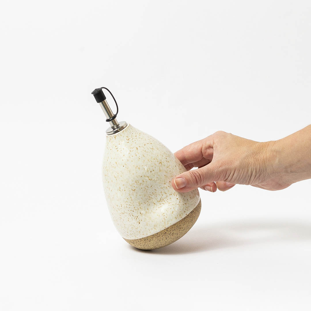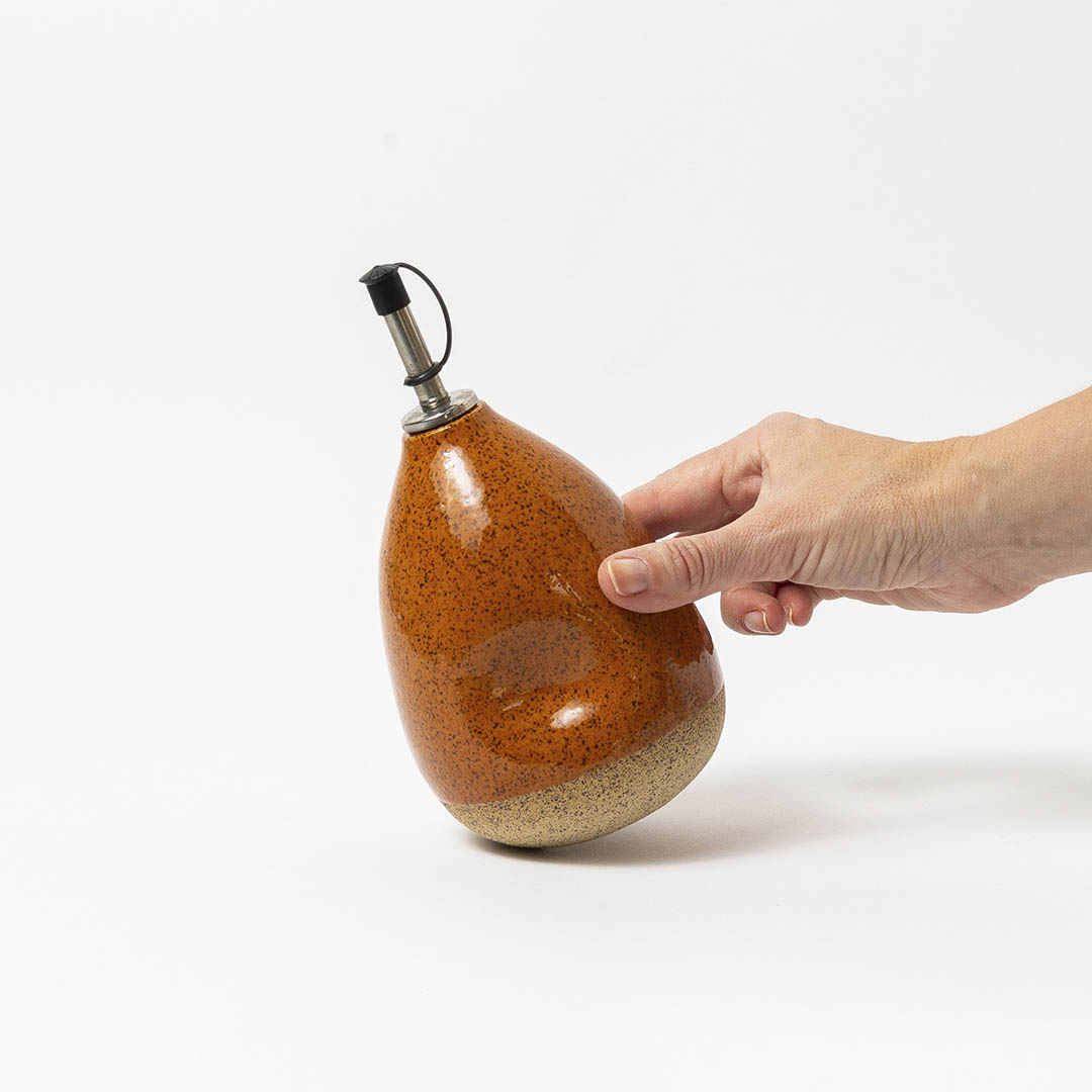 Azeiteiro com bico dosador em aço inox. Pode ser usada para vinagre também.