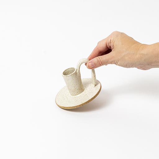 “Castiçal em cerâmica. Para tornar qualquer ocasião intimista e agradável e para compor a decoração da casa. Delicado na medida certa.