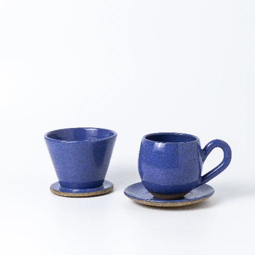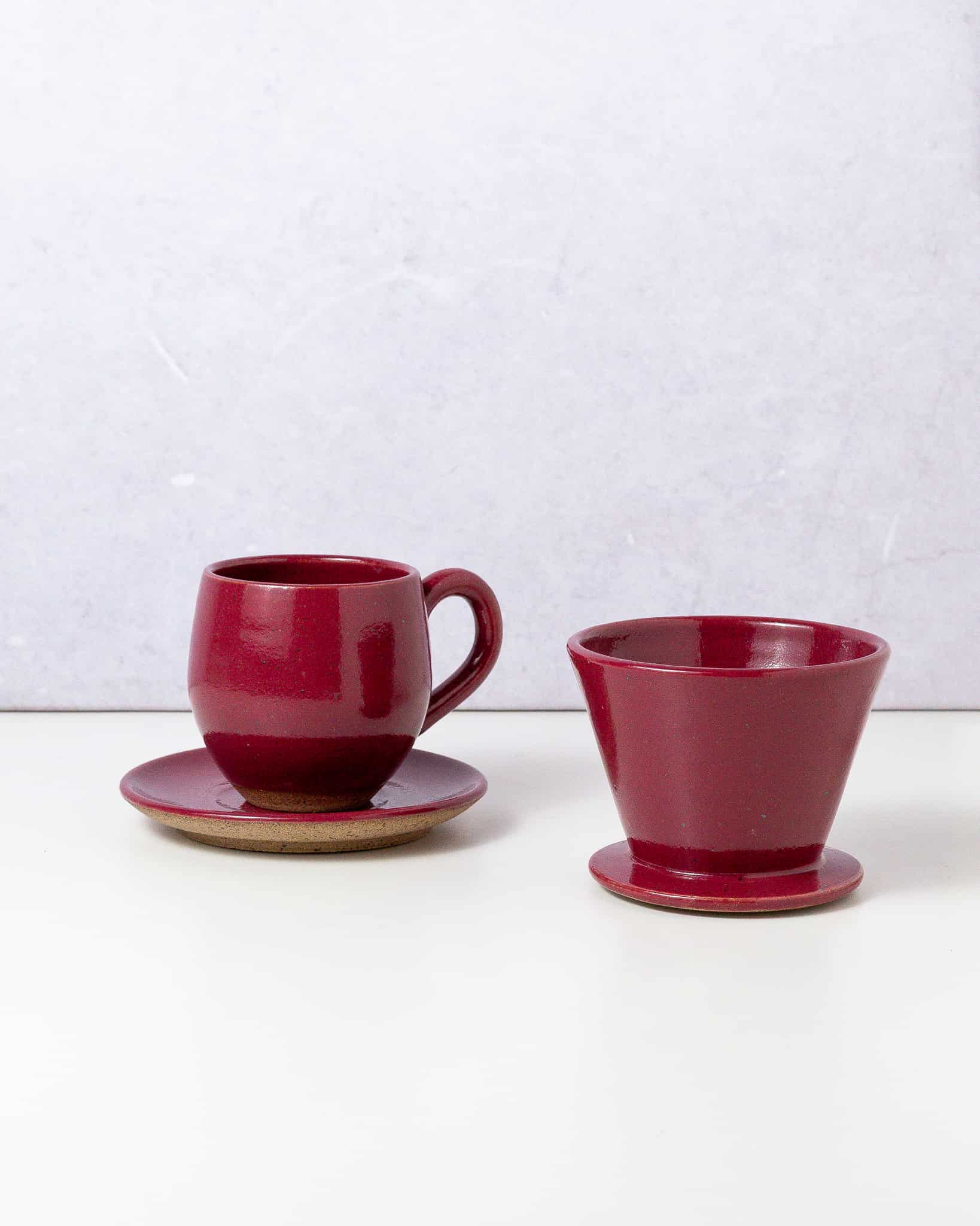 Coador em cerâmica pequeno para filtro de papel 102 e nossa xícara Évora. Dupla ideal para preparar aquele cafezinho fresco, onde quer que você esteja.