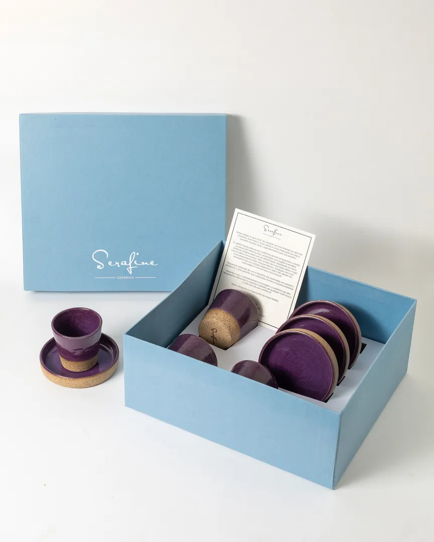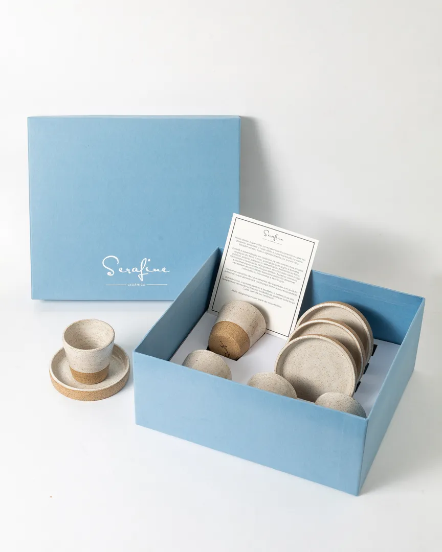 Conjunto de 4 copos para café Lisboa com pires borda reta. Ideal para bebidas quentes ou frias. Nessa linha “Special Gift”, as peças acompanham a caixa de presente personalizada. Para registrar momentos especiais e datas comemorativas ao longo do ano.