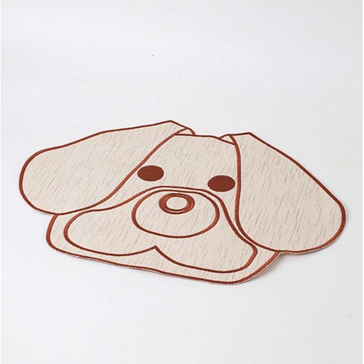 Jogo americano em formato de cachorro, de tecido sintético com textura de linho, impermeável em tons offwhite e marrom, com seu design lúdico divertindo à mesa. Ideal para uso no dia a dia.