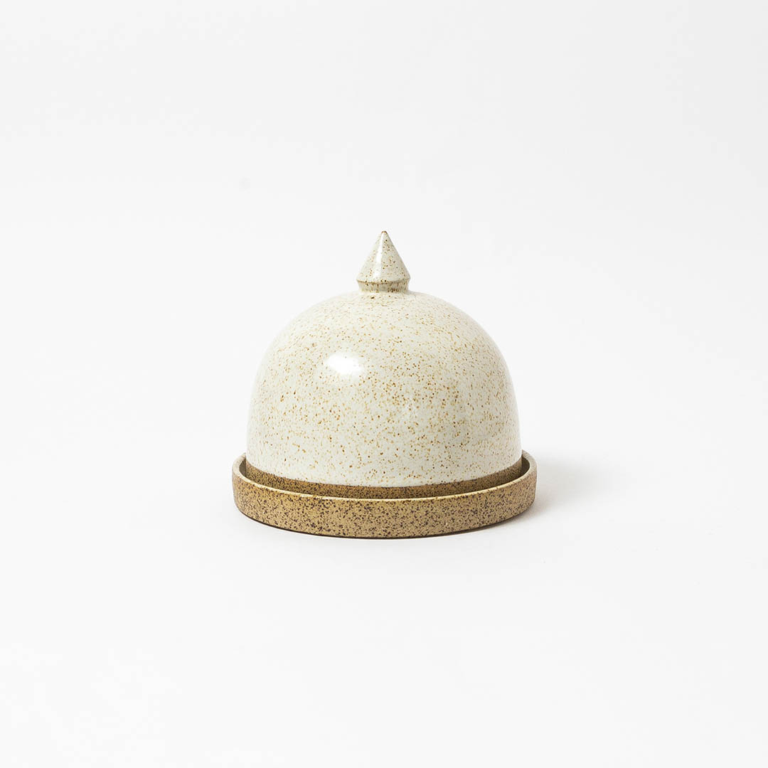 Manteigueira com tampa. Especialmente desenvolvida pela Serafine para acomodar a manteiga La Motte.