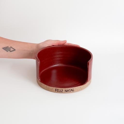 Para dar um charme todo especial na hora de servir o panetone ou chocotone no natal! Com aplicação de carimbo em baixo relevo “FELIZ NATAL”._x000D_