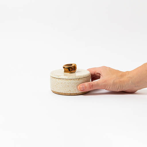 Perfeito para quem aprecia o minimalismo com um toque de elegância. O puxador em ouro, moldado à mão torna a peça única. Para manter suas joias e acessórios do dia a dia organizados e acessíveis.