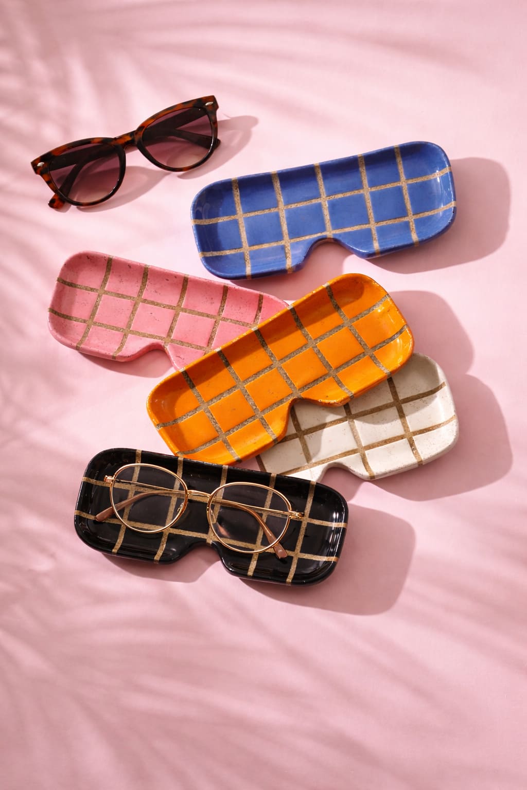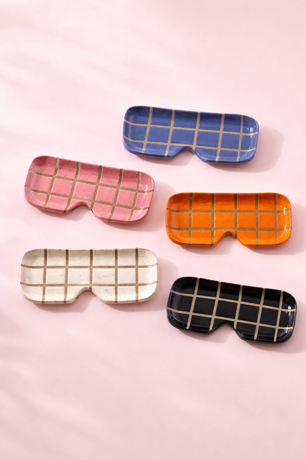 Uma peça pensada para o cotidiano. O porta-óculos organiza, protege e cria um lugar definido para aquilo que usamos todos os dias. Seu formato foi desenhado para acomodar os óculos com segurança, evitando riscos nas lentes e mantendo tudo sempre à mão: na mesa de cabeceira, no escritório ou em qualquer canto da casa. Produzido artesanalmente em cerâmica de alta temperatura, cada peça traz a textura natural do material e o desenho gráfico que valoriza suas linhas. Disponível em cinco cores.