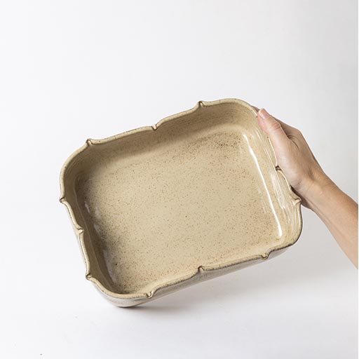 Travessas que acrescentam um toque artesanal a qualquer mesa. Travessas Braga. Ideal para grandes porções. Em dois tamanhos diferentes, são peças curinga na hora de levar as refeições à mesa. Faça suas marinadas, assados e massas nessas travessas.