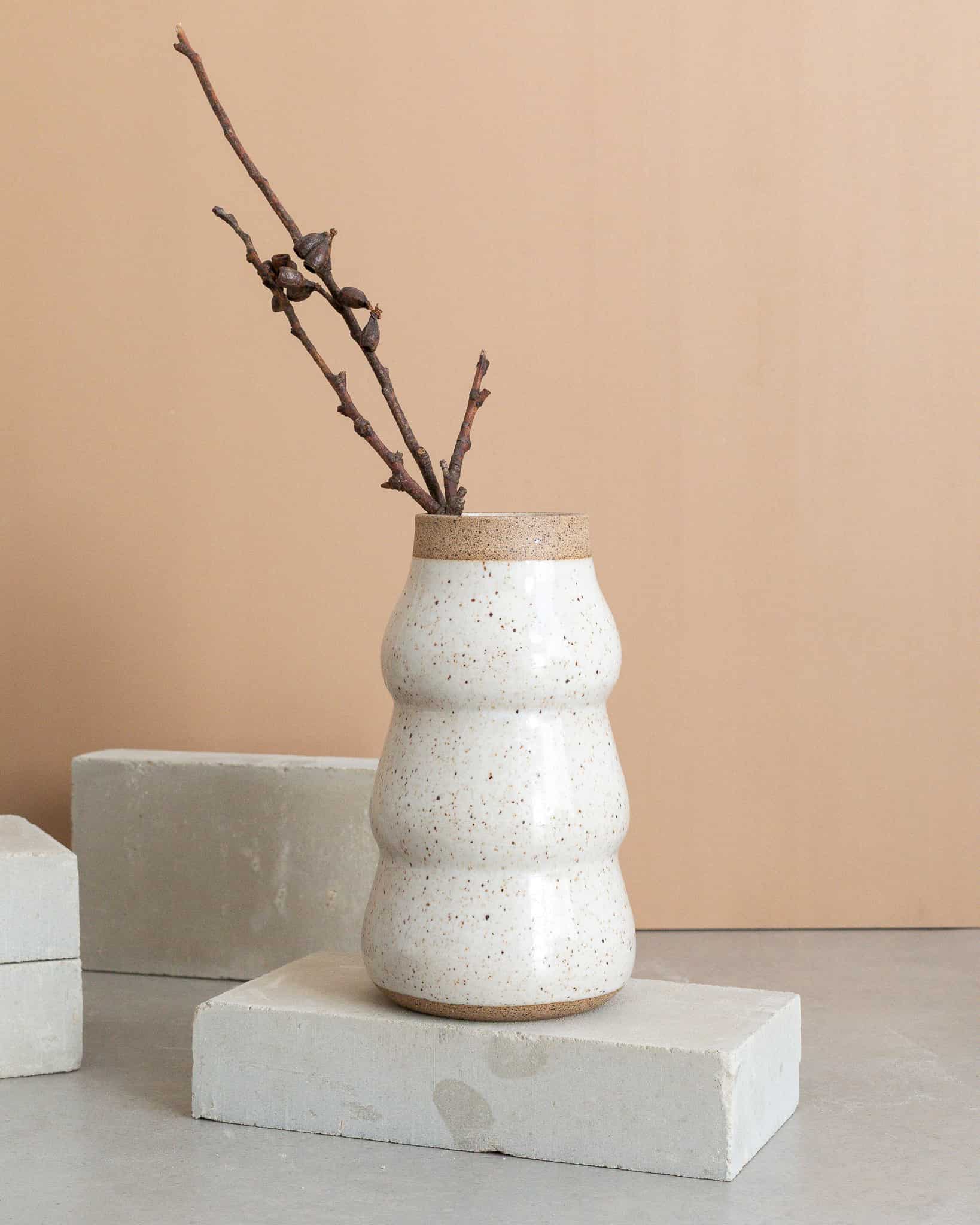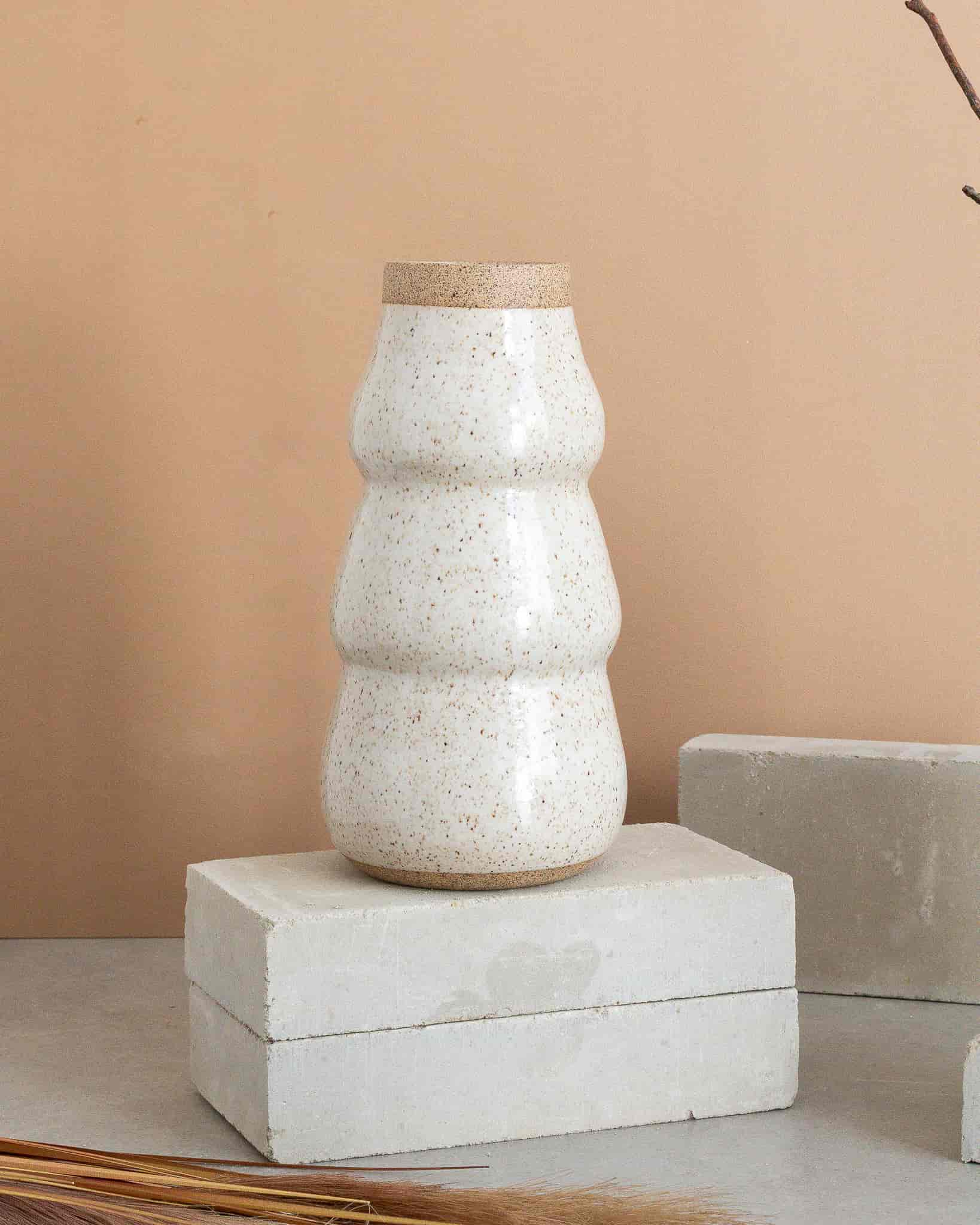Um design marcante com linhas orgânicas e ondulações marcadas, o Vaso Gomo traz um visual rítmico e contemporâneo. Modelado à mão, versátil e atemporal, ele pode ser usado como vaso decorativo, suporte para arranjos florais ou simplesmente como um objeto de destaque na decoração. Disponível nos tamanhos P e M.