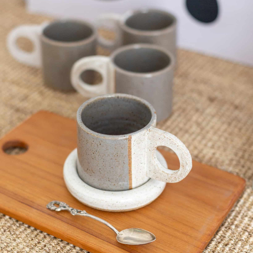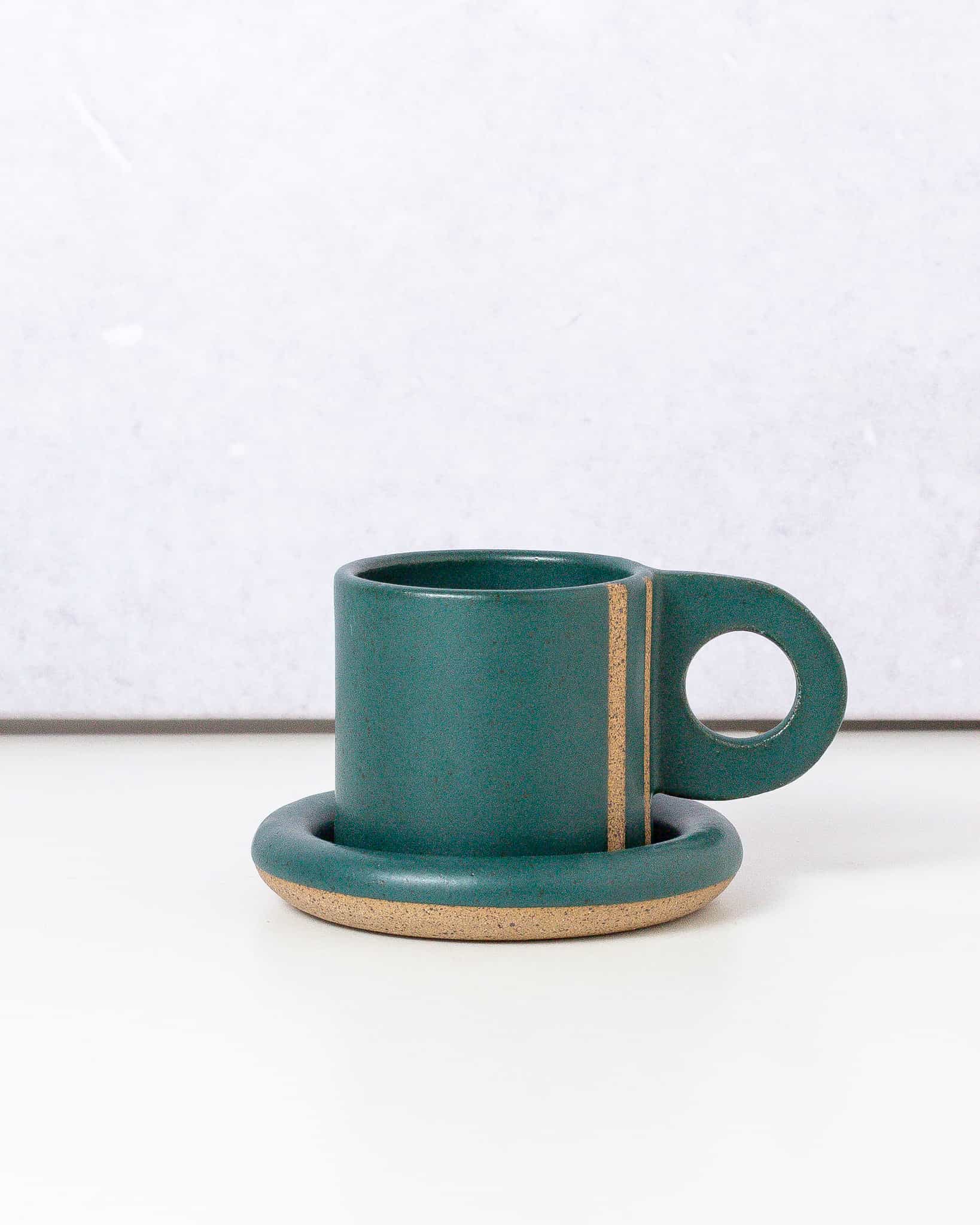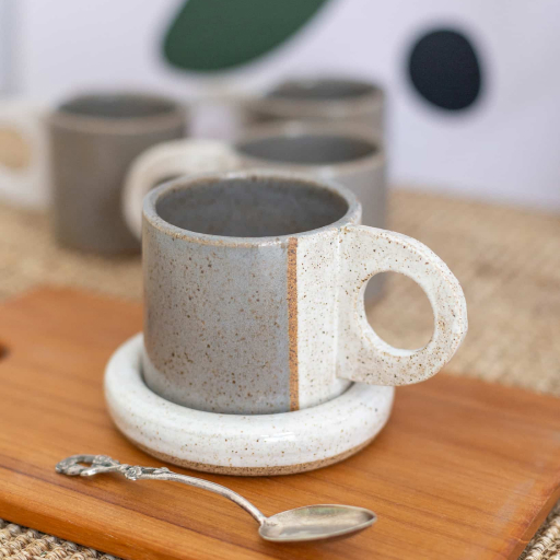 Xícara Orb. Com uma alça super estilosa e um pires com esse shape bem diferente e moderno. Ideal para bebidas quentes ou frias. O pires acompanha a peça.